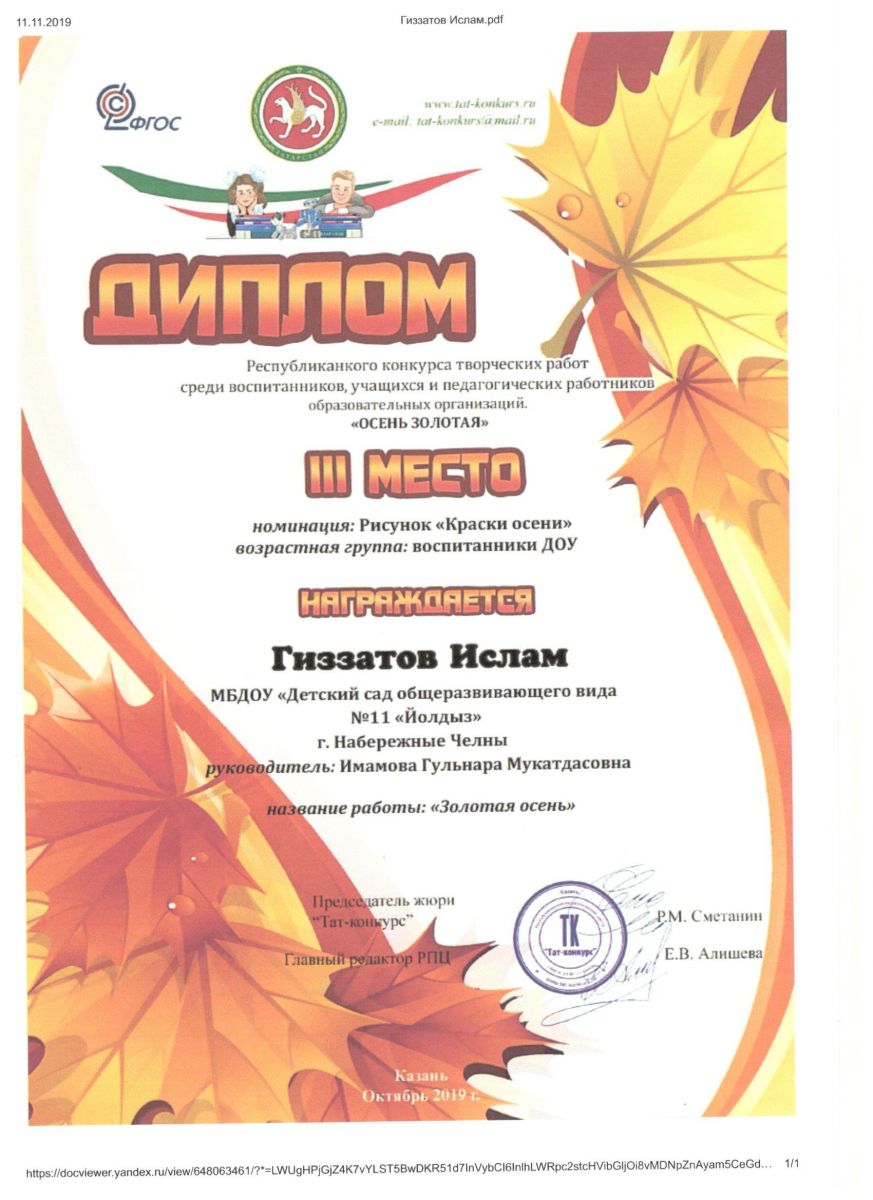 | Короткое название: | МБДОУ "Детский сад №11 "Йолдыз" |
