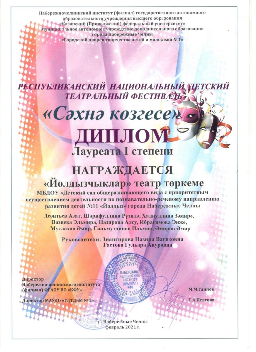 Театральный фкстиваль "Сэхнэ козгесе", Диплом 1 степени (2021)