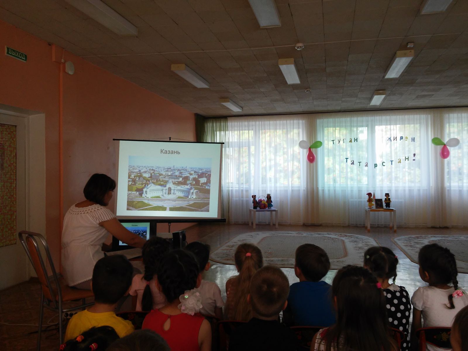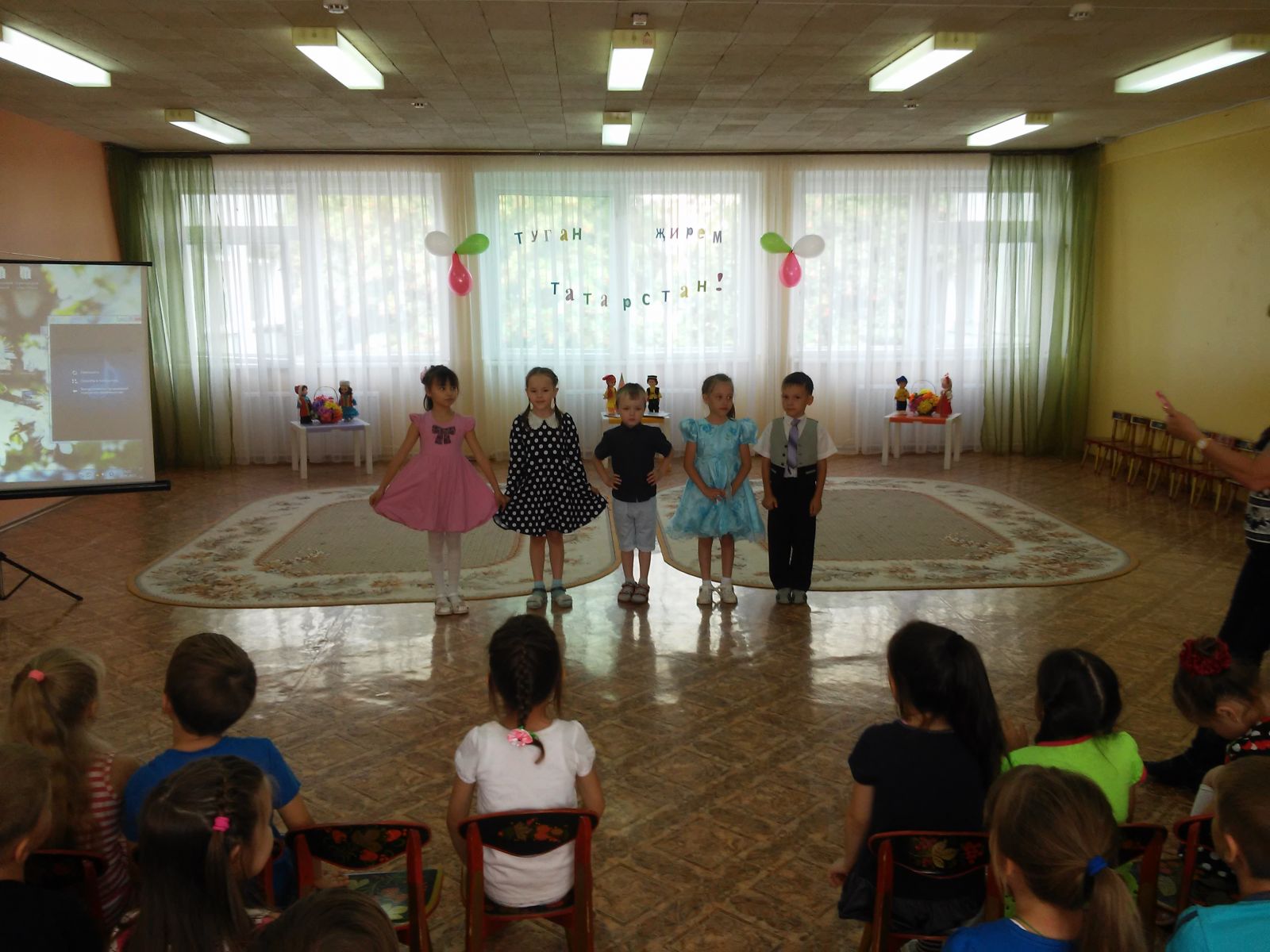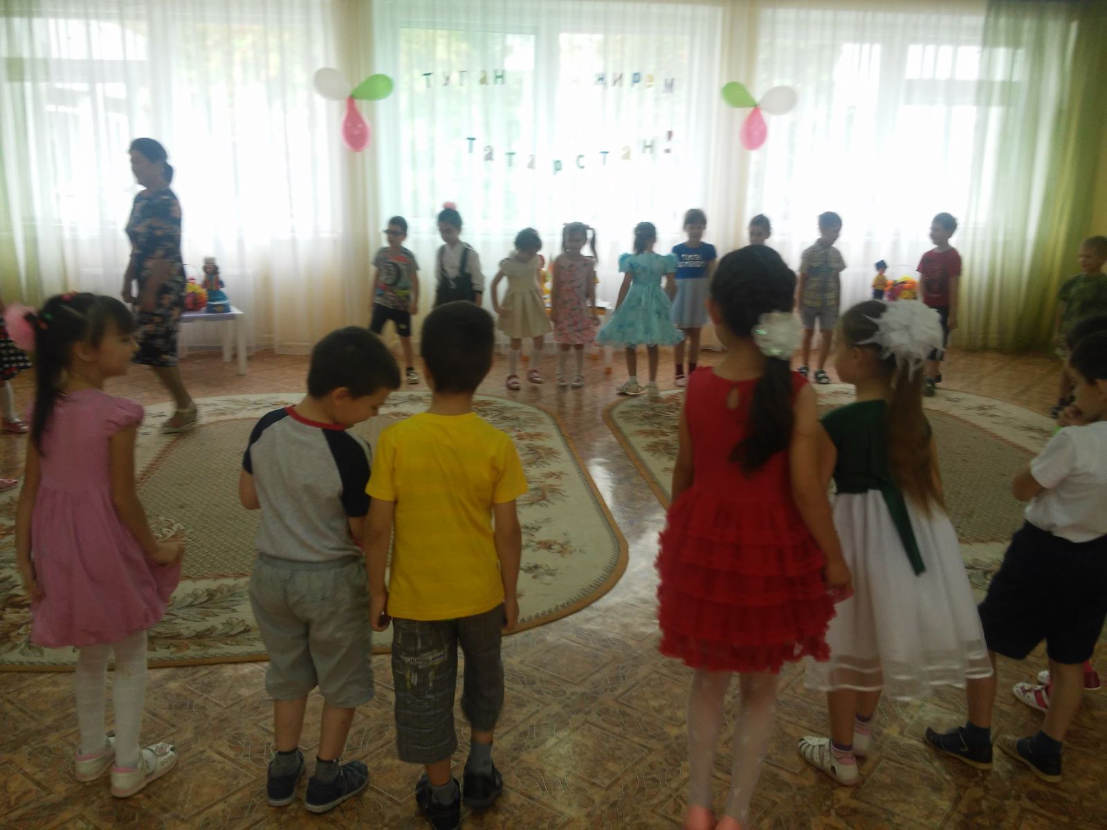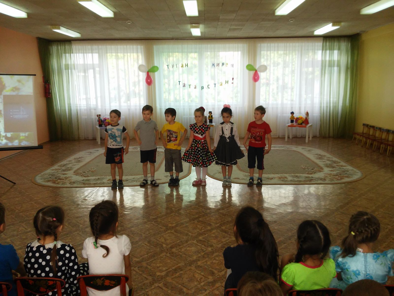 Сегодня 28 августа в нашем детском саду прошел праздник, посвященный празднованию Дня Республики Татарстан, для детей подготовительных групп. В начале праздника воспитанники смотрели презентацию и видео о РТ. Далее воспитанники рассказывали стихотворения о Республике Татарстан, о родном крае, так же пели песни как на татарском, так и на русском языках о РТ. Играли в национальные татарские игры.