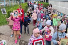 5 мая в дошкольном учреждении прошла акция «Бессмертный полк». Воспитанники сада совместно с родителями подготовили портреты своих родных – участников ВОВ, изготовили транспаранты.