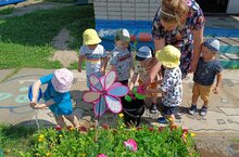 В нашем ДОУ летний оздоровительный период в самом разгаре! Дети летом в детском саду получают массу новых и интересных впечатлений. Основную часть времени они проводят на свежем воздухе. Ведущими видами деятельности дошкольников становятся игры, досуги, развлечения и оздоровительные мероприятия. Много радости приносят малышам игры с песком и водой, солнечные ванны, хождение босиком по траве, обливание водой. Воспитатели делают жизнь детей в этот период содержательной, познавательной и интересной.