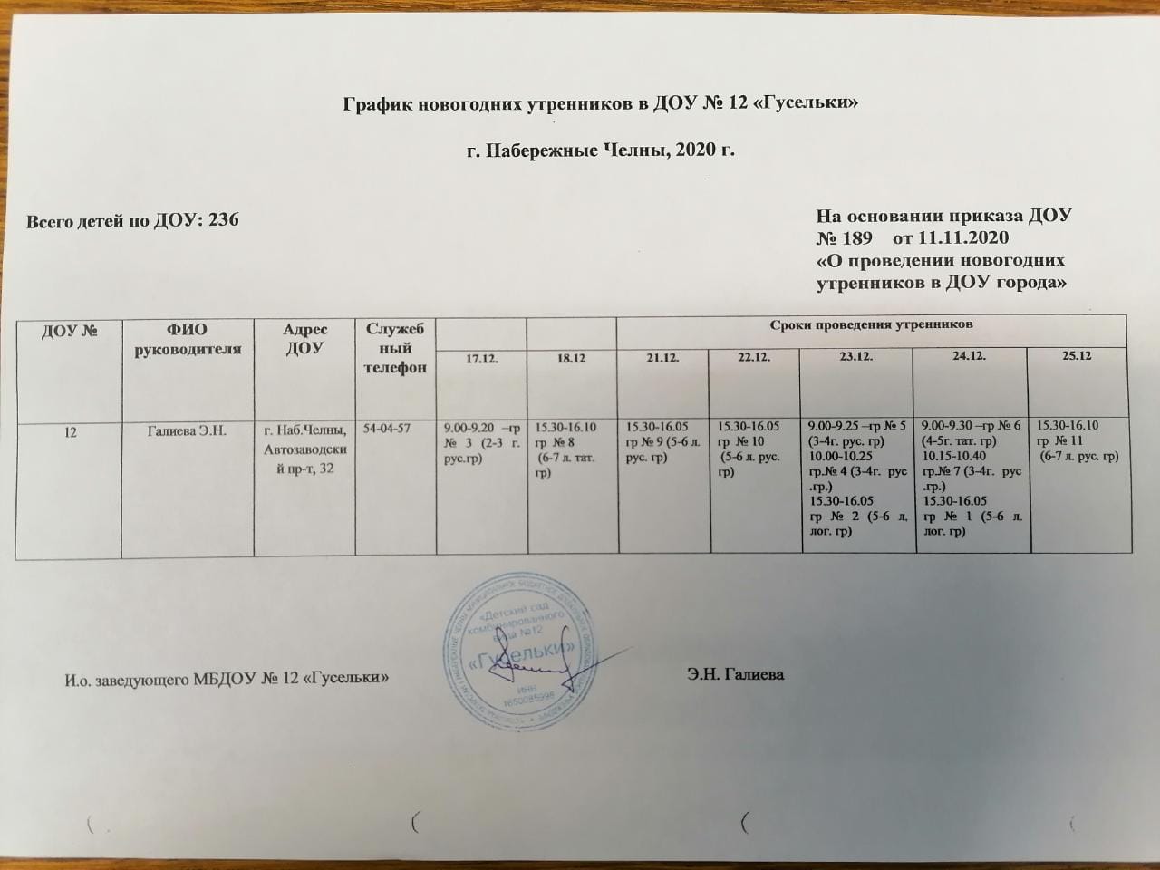 Короткое название: МБДОУ "Детский сад комбинированного вида № 12 "Гусельки"/«12нче «Гөсләкәй» катнаш төрдәге балалар «бакчасы»