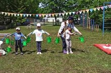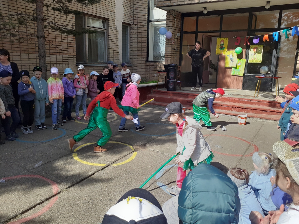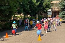 В детском саду провели с детьми веселый спортивный праздник с эстафетами, народными играми.