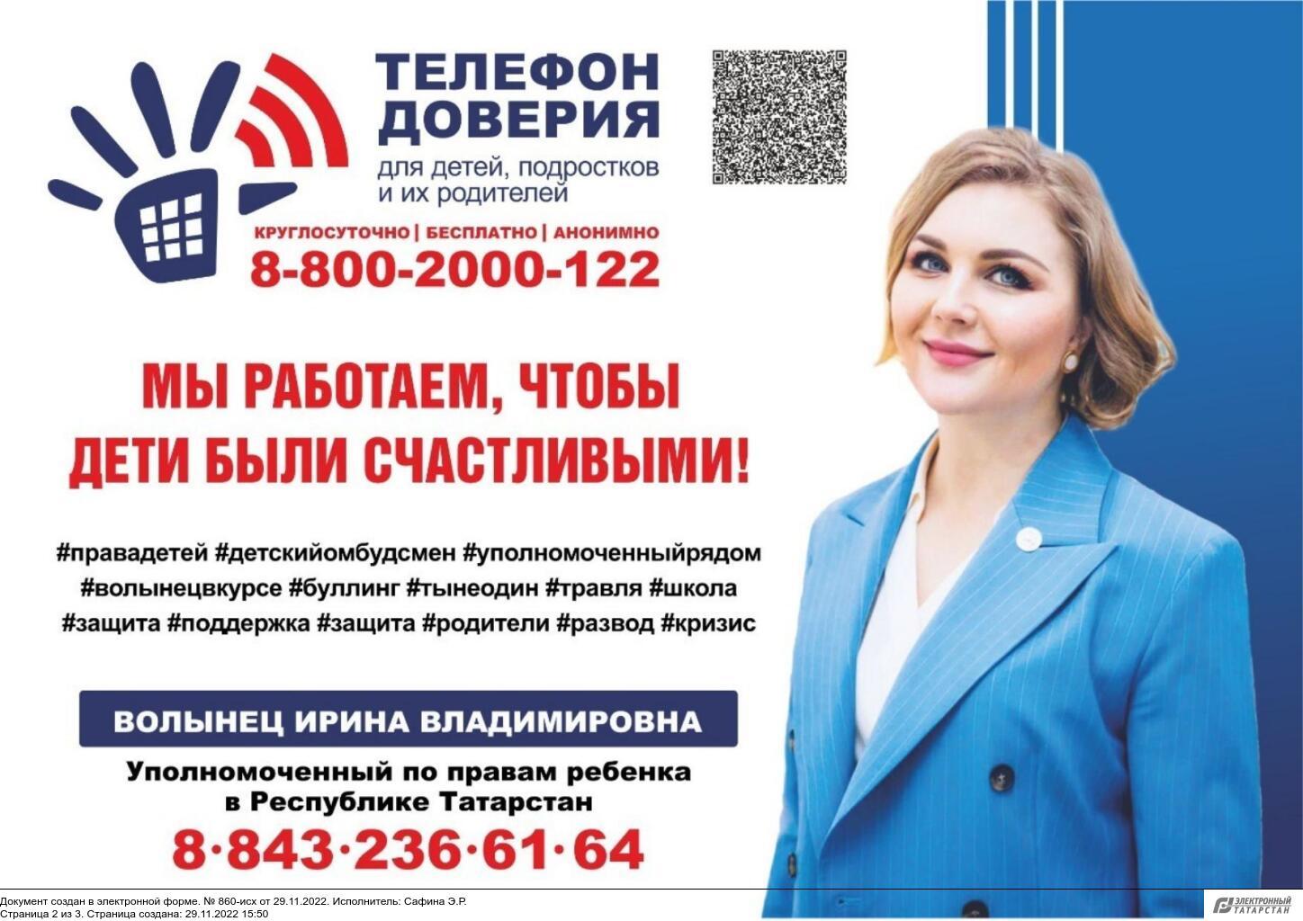 Телефон доверия Уполномоченного по правам охраны материнства и детства