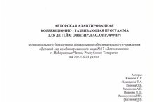 Сегодня педагогическим коллективом МБДОУ № 17 была утверждена авторская адаптированная коррекционно - развивающая программа для детей с ЗПР, РАС, ОНР, ФФНР для работы на инклюзивной ресурсной оздоровительной зоне "Вместе мы сможем больше" - для реализации проекта, поддерживаемый Благотворительным фондом "Татнефть".