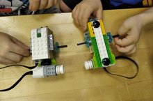 Ребята с кружка КИРТ изучают проект «Тяга». Сборка робота-тягача.