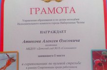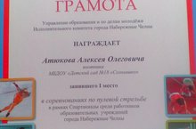 Поздравляем Атюкова Алексея Олеговича,занявшего1 место по пулевойстрельбе в рамках Спартакиады среди работников образовательных учреждений города Набережные Челны