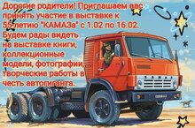 2024 год для «КАМАЗА» будет юбилейным — автогиганту исполнится 55 лет. Ровно столько лет назад в Набережных Челнах было начато строительство завода КАМАЗ. Над его созданием работала вся страна, переживая и подъемы, и кризисы. Сегодня это крупнейший в России производитель грузовых машин, который соответствует всем современным технологиям и тенденциям машиностроения, мощный автогигант, выпускающий различные виды автотехники: магистральные тягачи, самосвалы, автобусы, электробусы, специальную технику. В честь этой важной даты в холле нашего детского сада с 1 по 16 февраля пройдёт выставка "КАМАЗ - наше будущее". Возможно у кого-то из вас, дорогие родители наших воспитанников, хранятся коллекционные модели КАМАЗ, книги, вырезки, фотографии и т.д. Будем рады видеть всё это в качестве экспонатов нашей выставки. Приветствуются творческие работы, посвящённые КАМАЗу, выполненные своими руками, совместно с детьми.