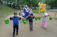 Уже всё вокруг дышит красотой: зеленеют и цветут сады, солнце ласково пригревает, раздаются весёлые трели птиц. Весенне-полевые работы подошли к концу. Всё это замечательный повод собраться дружно вместе и весело отметить народный праздник Сабантуй. С татарского языка Сабантуй переводится как праздник плуга. Это праздник земледелия, почитания Земли-матушки, день поклонения ей. Этот праздник самый яркий, самый весёлый и самый любимый у народов нашего края. Он укрепляет дружбу между разными народами, ведь на него съезжаются гости со всех уголков нашей большой родины. Празднуется Сабантуй всегда весело и зажигательно. На этом празднике люди соревнуются в силе, ловкости и выносливости. Вот и мы с ребятами под девизом "Сабантуй, Сабантуй! Пой, скачи, борись, танцуй!" собрались на зелёной лужайке сада, чтобы поприветствовать летнюю природу, посоревноваться, повеселиться, испытать удачу, проявить удаль и смекалку. Наши ребята, нарядно одетые в духе народных традиций, и красиво украшенная шариками и флажками площадка сада с приготовленной атрибутикой в виде канатов, лошадок, мячей, - радовали глаз всех присутствующих. Наш праздник прошёл в форме состязаний и конкурсов, традиционных для Сабантуя. Приятно осознавать, что в семьях наших воспитанников чтят народные традиции и помнят их историю, показывая тем самым, что Сабантуй – прежде всего семейный праздник. Дети хорошо подготовились, были в отличной спортивной форме, бодро и задорно принимали участие в заданиях ведущих, демонстрируя волю к победе. Не отставали от малышей и воспитатели, активно принимая участие в конкурсах и вызывая дружный заливистый смех. В празднике проигравших нет, так как Сабантуй – это праздник мира и дружбы. Желаем нашим ребятам оставаться такими же сплочёнными, умными, смелыми и умелыми! Спасибо всем, кто участвовал в организации праздника. Все без исключения получили небывалый заряд положительных эмоций, а позитивные впечатления от праздника останутся у всех его участников надолго.