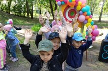 На календаре 1 июня - первый день самого тёплого, яркого и красочного времени года. Этот день также объявлен во всём мире Днём защиты детей. Этот праздничный день имеет собственный флаг - на ярком зелёном фоне изображена планета Земля, вокруг которой расположены разноцветные фигурки, символизирующие держащихся за руки детей. Вот и мы сегодня, дружно взявшись за руки, отправились на площадку детского сада, чтобы весело отметить этот добрый светлый праздник и устроить развлечение «Смайлик-Шоу». В программе были заводные песни о лете, зажигательные танцы, забавные конкурсы. Ребята активно принимали участие. Повсюду царили веселье, радость и дружный заливистый смех. Забавные герои - смайлики Певун, Попрыгун, Весельчак, Остроум и клоун Смешинка, пришедшие в гости на праздник, развлекали детей загадками и подвижными играми. В завершение праздника ребята вместе с героями праздника устроили зажигательную дискотеку. Пусть наши озорные дружные ребята будут здоровы и счастливы, а небо над их головами всегда мирным!