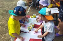 Летом в детском саду вопрос - как интересно и занимательно организовать досуг детей - стоит на первом месте. В рамках плана на летний оздоровительный период мы провели мероприятие "Краски лета". Его задачи: закреплять знания детей о лете, как о явлении природы, о цветовой гамме лета; уметь ассоциировать цвет с летним природным явлением: синий – небо, васильки; желтый – солнышко, одуванчики; зеленый – травка, листочки на деревьях и т.д.; развивать у детей интерес к ИЗО - деятельности и желание рисовать мелками на асфальте. Так, вооружившись мелками всех цветов радуги, с отличным настроением мы отправились на площадку детского сада, чтобы украсить ее забавными рисунками, посвященными прекрасной летней поре. Праздник получился дружным, ярким и веселым.