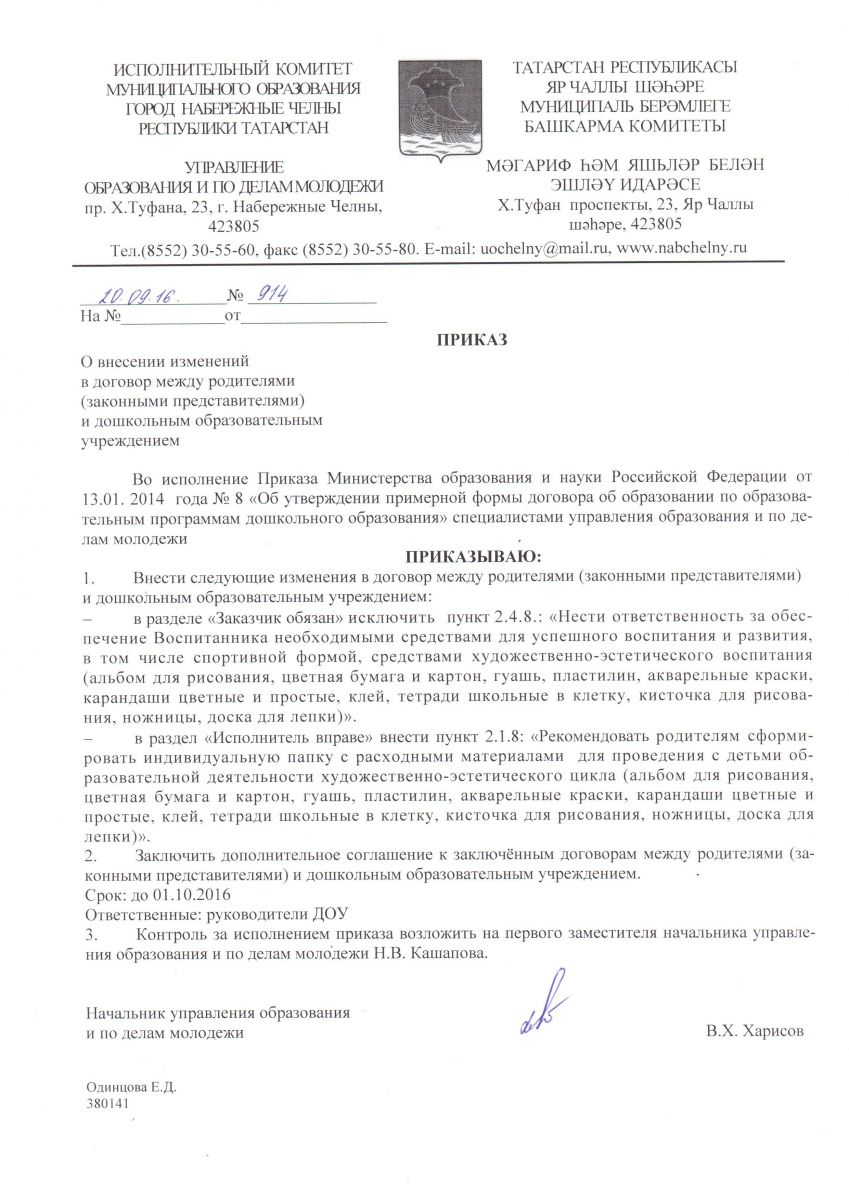 О внесении изменений в договор между законными представителями и дошкольным образовательным учреждением