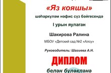 Наша воспитанница Шакирова Ралина стала победителем в городском конкурсе чтецов "Яз кояшы" 19.05.2020