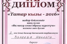 Поздравляем нашу воспитанницу Валееву Наилю с победой в городском конкурсе "Татар кызы"" 22.04.2016