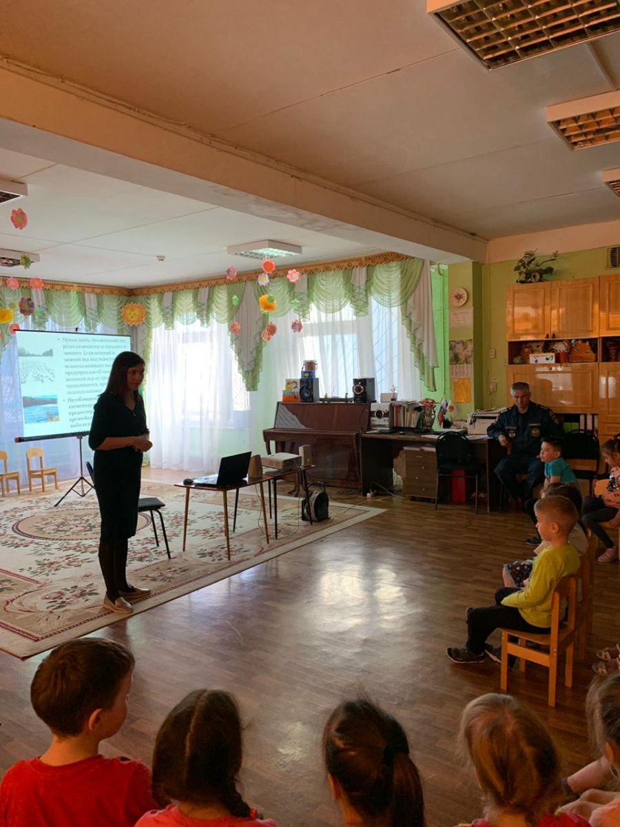 Опубликовано: 17.04.2019Сегодня в наш детский сад был приглашен инспектор МСЧ Мустафин З.Х., который провел с дошкольниками тематическую беседу, рассказав почему лед на весенних водоемах представляет такую опасность. Детсадовцам была показана презентация по теме , где они смогли повторить правила поведения вблизи водоемов весной. Дошколята запомнили, что весной к водоемам подходить нельзя и тем более выходить на лед. Для закрепления полученных знаний ребята посмотрели мультфильм «Дед Мазай и зайцы».