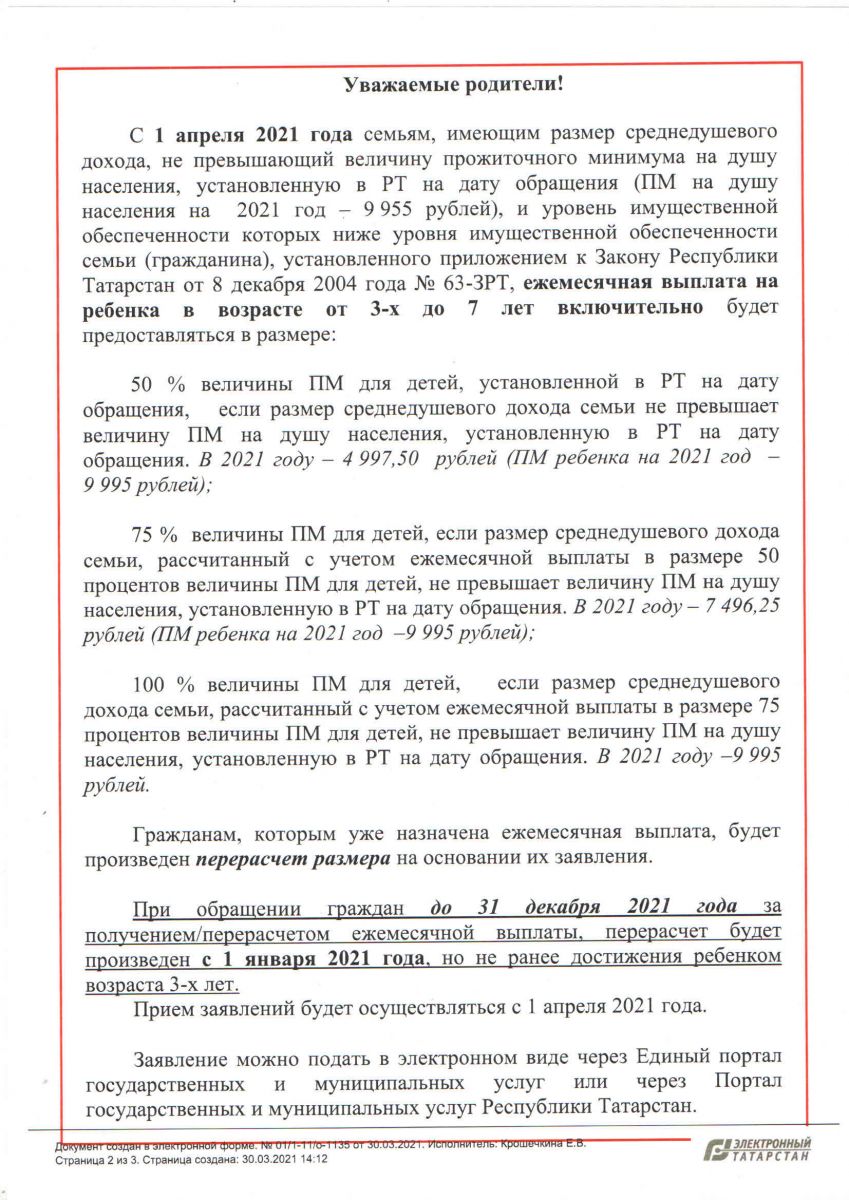 Информация для родителей по выплатам на детей от 3-х до 7 лет