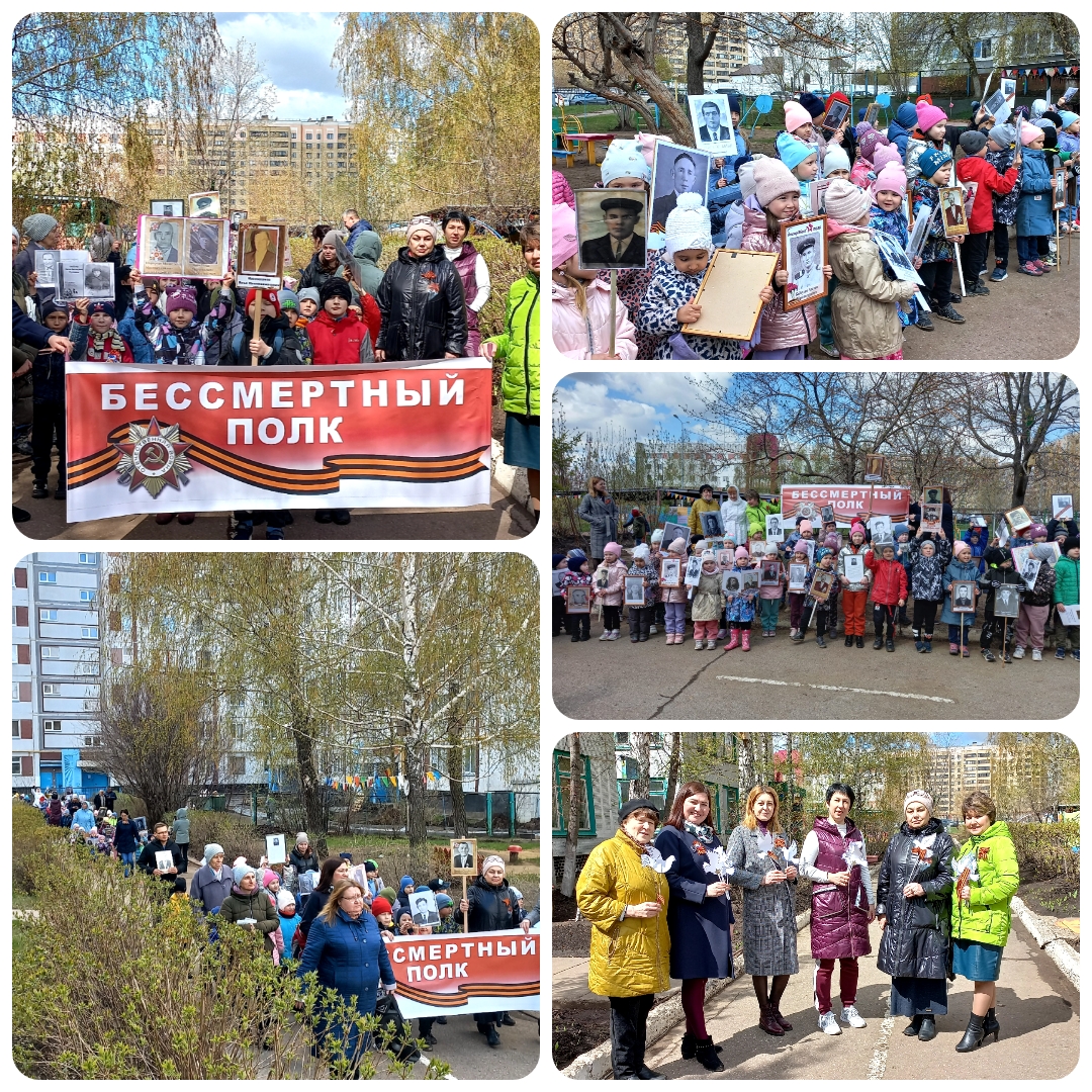 06 мая в 10.30 на территории детского сада прошла акция «Бессмертный полк», в которой участвовали сотрудники ДОУ, воспитанники и их родители. Все с портретами своих предков прошли колонной вокруг сада. Участники пели песни военных лет.