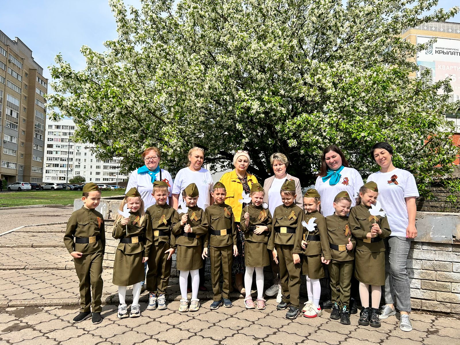 Продолжением торжественных мероприятий стало участие Детского сада в акции «Георгиевская лента». В рамках межведомственного сотрудничества с «Центром Добровольчества» и молодежным центром «Орион», воспитанники-волонтёры подготовительных групп вместе со своими педагогами распространяли георгиевские ленты среди жителей 32-го и 62-го комплексов и поздравляли их с наступающим праздником. Также были вручены памятки с информацией о георгиевской ленте и о правильных способах её ношения. Эта акция дала возможность нашим воспитанникам почтить память ветеранов, сформировала чувства причастности к этому празднику и позволила развить чувства уважения и любви к Родине.
