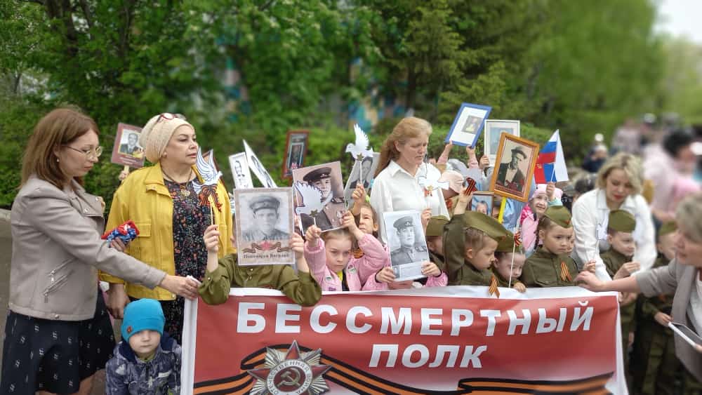 Опубликовано: 04.05.2023Для расширения знаний об истории нашей Родины, с целью воспитания нравственности и патриотизма в преддверии 9 мая в МБДОУ «Детский сад №2 «Алсу» прошли мероприятия, посвященные Дню Победы. Педагоги с воспитанниками участвовали во Всероссийских акциях «Звезда Победы», «Свеча памяти», «Окна Победы». В детском саду оформлена тематическая фотозона «Помним…Гордимся…Чтим…». Одним из важных запланированных мероприятий стал праздник с детьми старших групп «Мы помним годы боевые». Дети с огромным удовольствием танцевали, рассказывали стихи, слушали и исполняли песни военной тематики, о мире, дружбе. Это позволило более ярко и ближе воспринять события прошлых военных лет. После мероприятия воспитанники всех возрастных групп и их родители в целях передачи эстафеты памяти, участвовали в акции «Бессмертный полк». Воспитанники с гордостью и с уважением несли транспаранты с портретами своих прадедов и прабабушек.