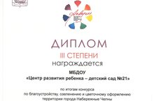 ПОЗДРАВЛЯЕМ КОЛЛЕКТИВ ДОУ №21 С ДИПЛОМОМ 3 СТЕПЕНИ в городском этапе конкурса по благоустройству территории "Акварель-2017" 14.09.2017
