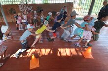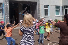 Для закрепления умения действовать в команде, парах; развития скоростно-силовых качеств и совершенствования умения бегать в разных направлениях, закреплять умение точно бросать мяч из рук в руки, действовать по сигналу педагога с детьми старших групп провели спортивное развлечение. А в завершении организовали дискотеку с мыльными пузырями.