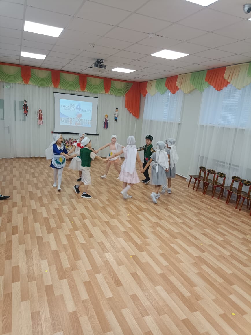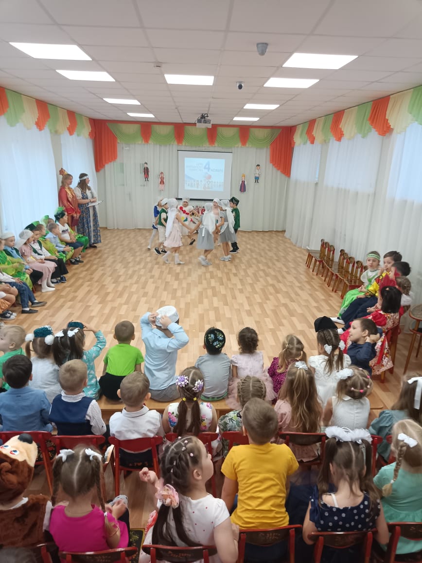 4 ноября вся Россия отмечает праздник День Народного Единства – праздник единства почти ста девяноста национальностей, проживающих на территории нашей страны. В детском саду №25 «Сказка» воспитатели и дети собрались вместе на праздник, посвященный этой дате. На празднике дети узнали о великом подвиге Дмитрия Пожарского и Кузьмы Минина, читали стихи и пели песни о нашей Родине, исполняли национальные танцы, поиграли с малышами в национальные игры. В заключение праздника, крепко взявшись за руки, дети объединились в один большой дружный многонациональный хоровод. В нашей стране живет много народов и для всех нас Россия является Родиной.