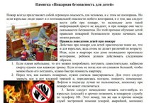 Уважаемые родители, педагоги и посетители нашего сайта! Представляем Вашему вниманию памятки по правилам пожарной безопасности для детей.