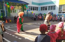 Сегодня в нашем детском саду прошёл праздник- День знаний! К ребятам в гости приходили клоун Рыжик и баба-яга. Ребята соревновались в эстафетах, пели песни и танцевали!