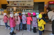 Сегодня воспитанники подготовительной группы знакомились с профессией пекаря. Каждый день заходя в пекарню, с родителями, наши воспитанники даже не подозревали как много технических и творческих умений нужно освоить, чтобы испечь булочку или пирожное. Как замешивается тесто, как выпекается сразу большое количество изделий, как составляется рецепт – все это очень увлекательно. За год нам предстоит узнать много нужных профессий. «Все работы хороши, выбирай на вкус!»