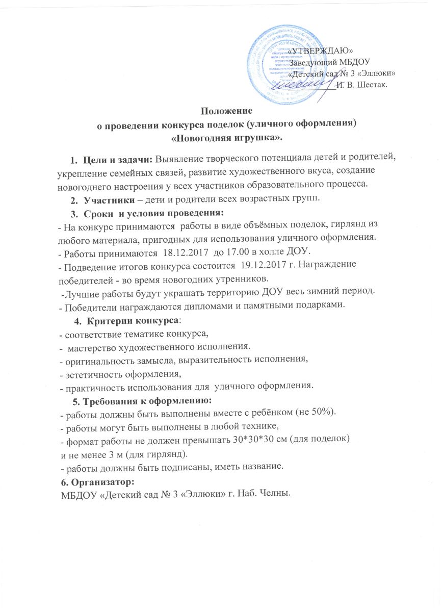 Опубликовано: 12.12.2017Уважаемые родители!. Приглашаем Вас принять участие в конкурсе поделок для уличного оформления "Новогодняя игрушка". Работы принимаются 18.12.2017 до 17.00. Подведение итогов и награждение на новогодних утренниках. Более подробную информацию о конкурсе можно скачать здесь. Ждём ваши работы. Удачи всем !!