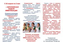 По инициативе Всемирной организации здравоохранения в Европе, в том числе в Российской Федерации и в Республике Татарстан в период с 26 апреля по 2 мая 2021 года проводится Европейская неделя иммунизации (далее ЕНИ-2021).