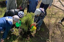 В память о погибших в нашем детском саду посадили две ели, за которыми ухаживают старшие ребята.