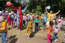 В нашем детском саду “Красная шапочка” радостно, звонко, тепло и красочно прошёл главный праздник детства –веселый музыкально – спортивный праздник “Страна Детства”. Праздник проводился на спортивной площадке, нгачался с веселой песни, которая создала праздничное настроение. Детей веселили клоуны Ириска и Анфиска. Вместе с клоунами дети участвовали в играх,необычных эстафетах. Праздник продолжился рисованием на асфальте цветными мелками, пусканием мыльных пузырей. Дети получили море впечатлений, зарядились хорошим настроением на весь день!