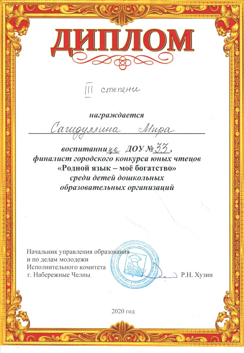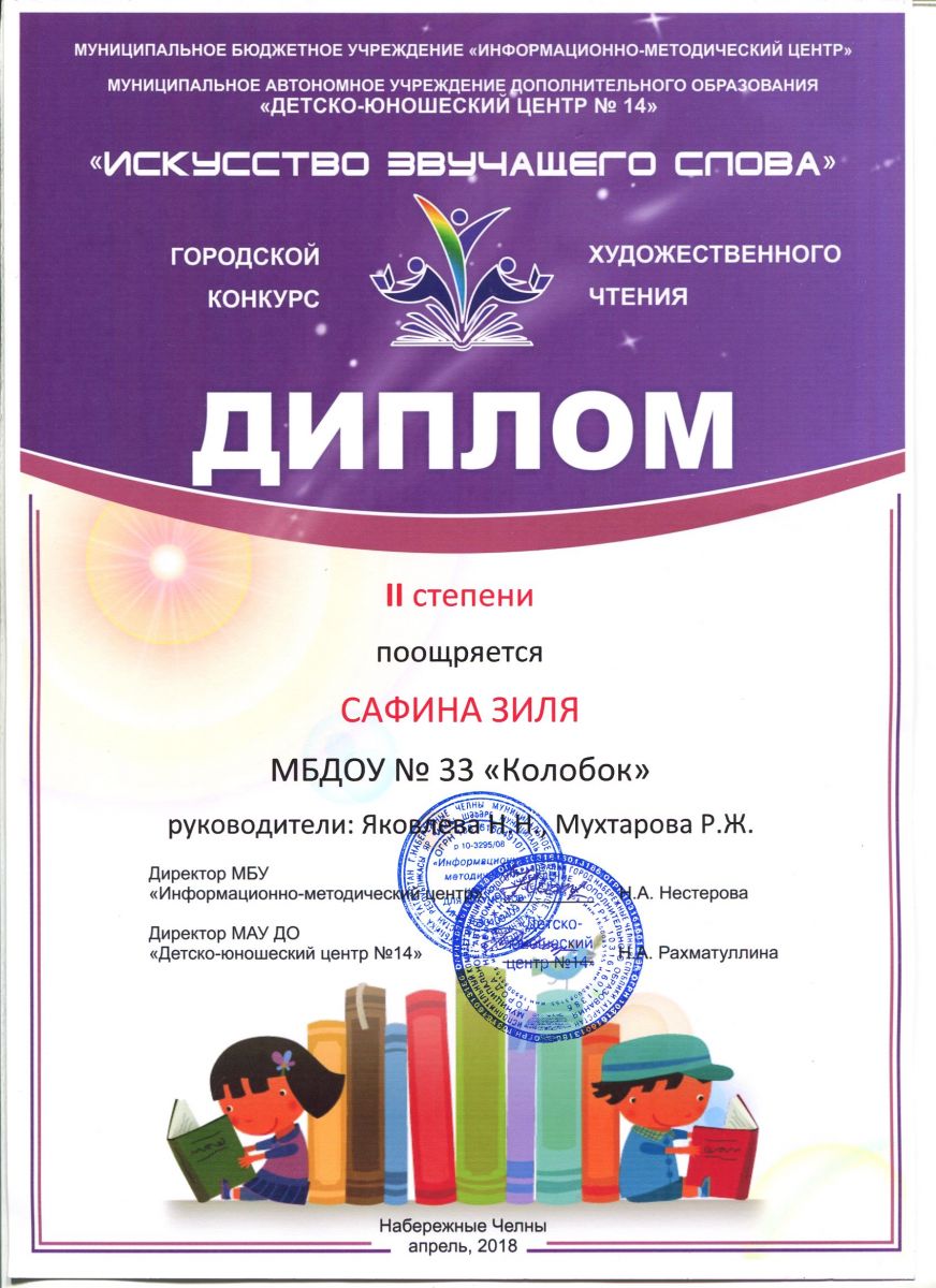 Городской конкурс "Искусство звучащего слова" Диплом 2 степени Сафина Зиля