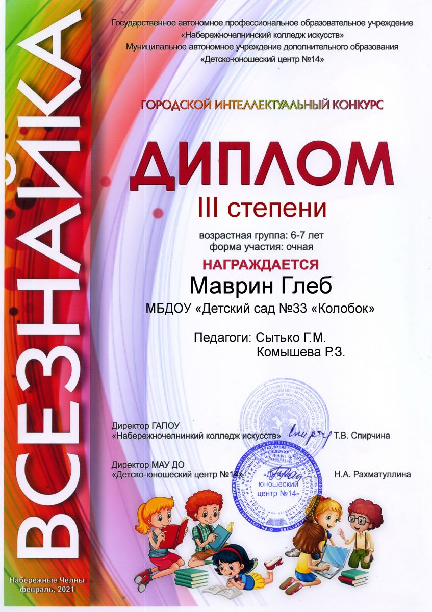 Городской конкурс среди воспитанников "Хочу всё знать!" Диплом 2 степени