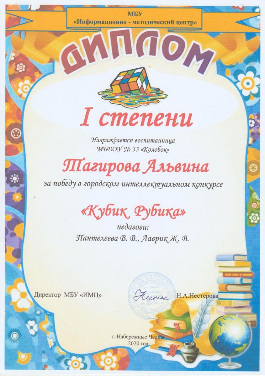 Городской интеллектуальный конкурс "Кубик-рубик" Диплом 1 степени Тагирова Альвина