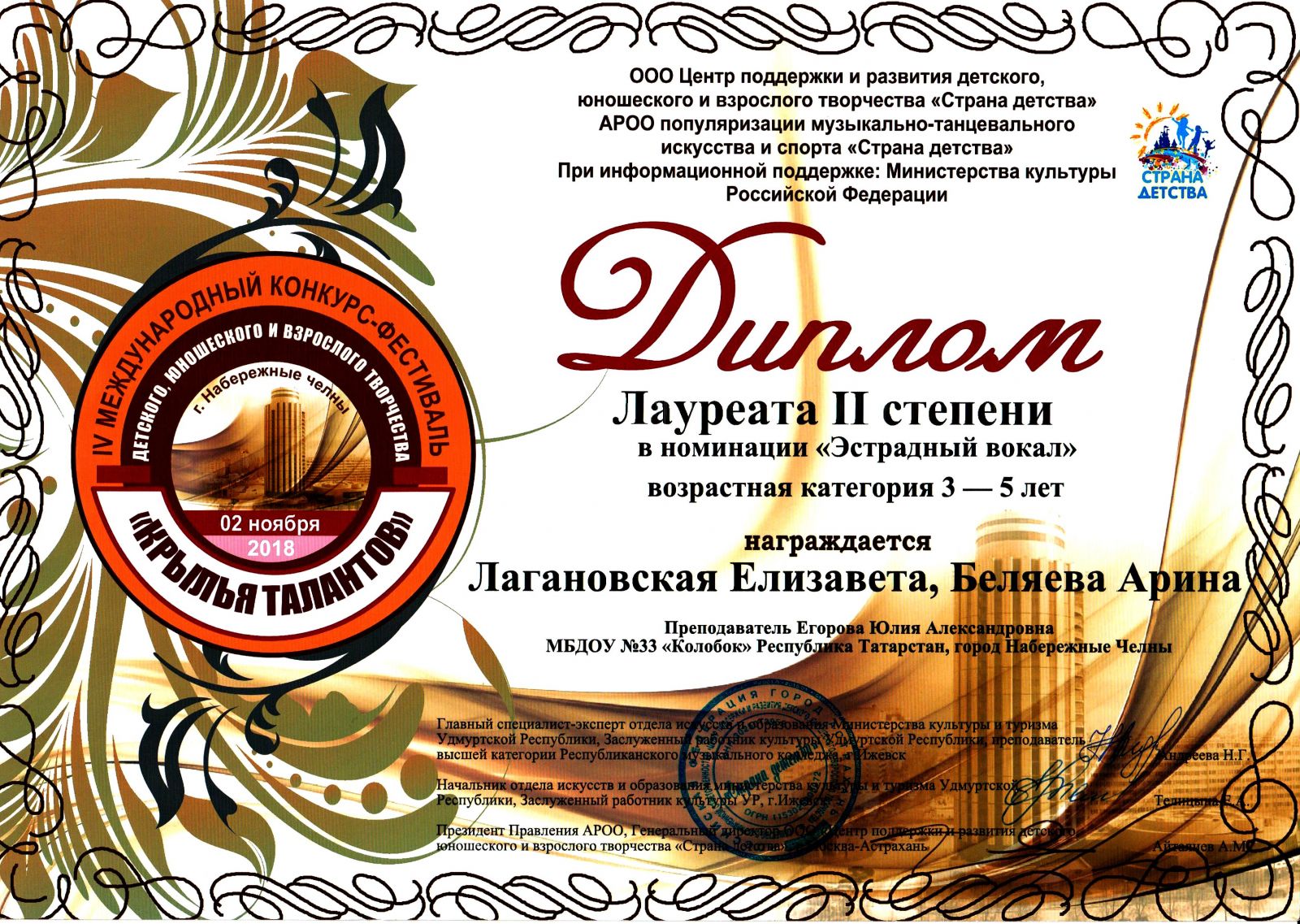 /upload/storage/org4741/files/IV Международный конкурс - фестиваль "Крылья талантов", Диплом Лауреата II степени в номинации "Эстрадный вокал", Лагановская Елизавета, Беляева Арина.jpeg