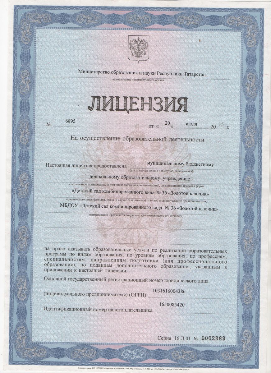 Муниципальное бюджетное дошкольное образовательное учреждение «Детский сад комбинированного вида №36 «Золотой ключик» города Набережные Челны»