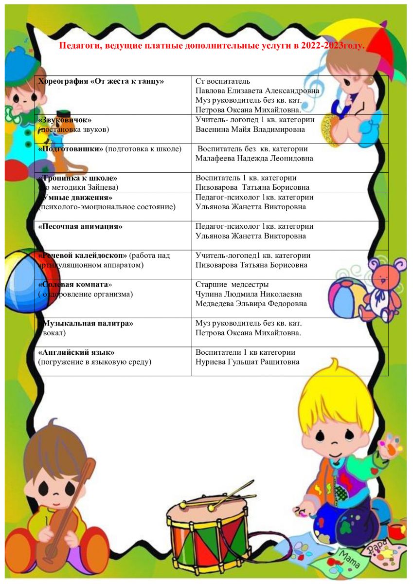 Расписание дополнительных платных образовательных услуг на 2023-2024 уч. год