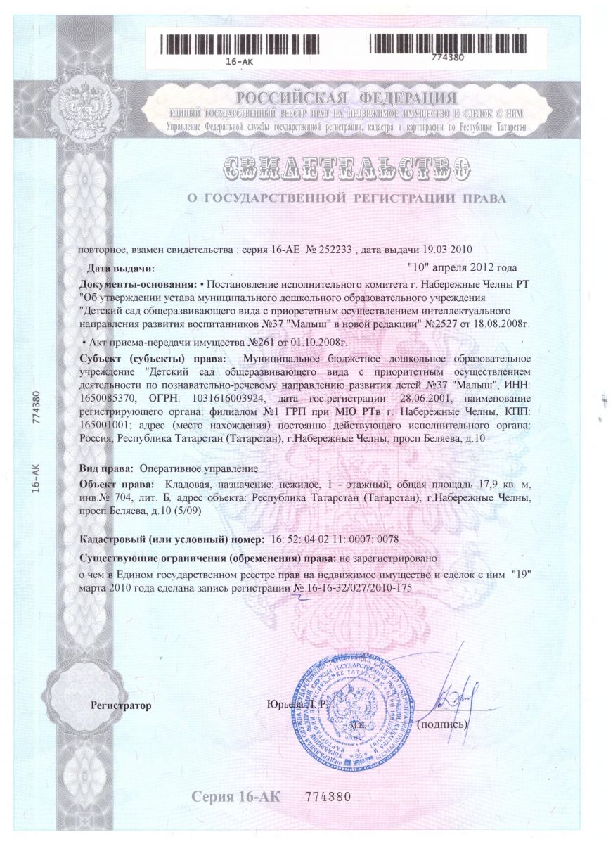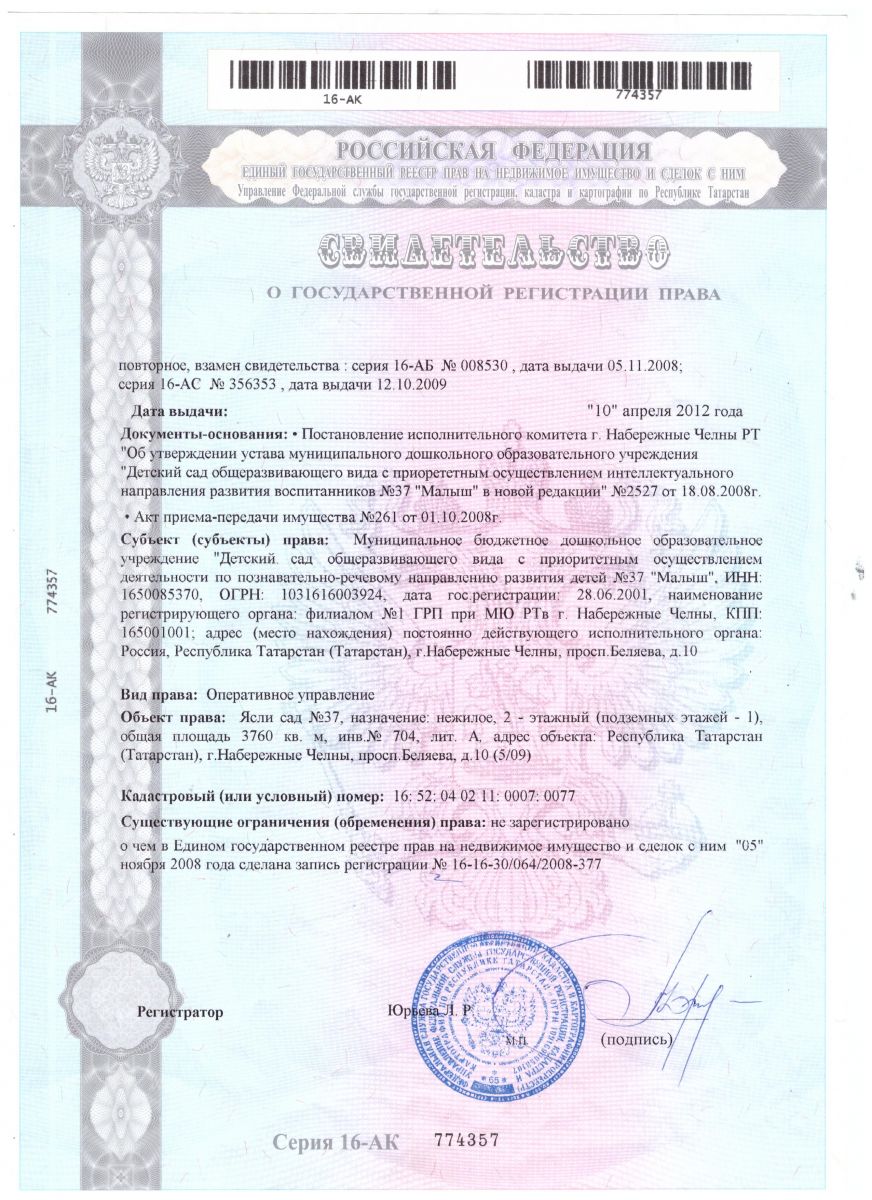 | Короткое название: | МБДОУ "Детский сад № 37 "Малыш" |