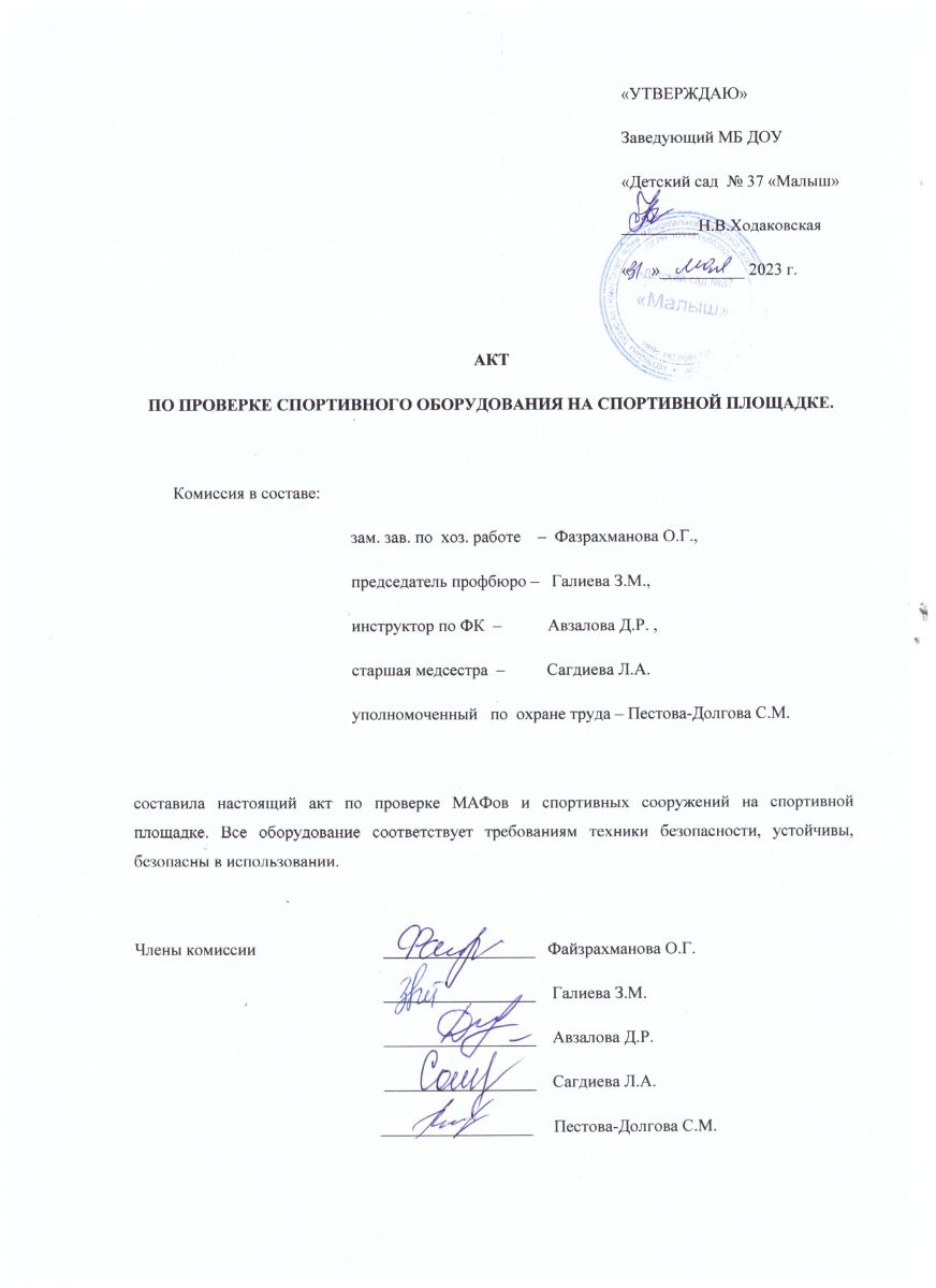 Акт осмотра спортивного оборудования на спортивной площадке 2023 г.