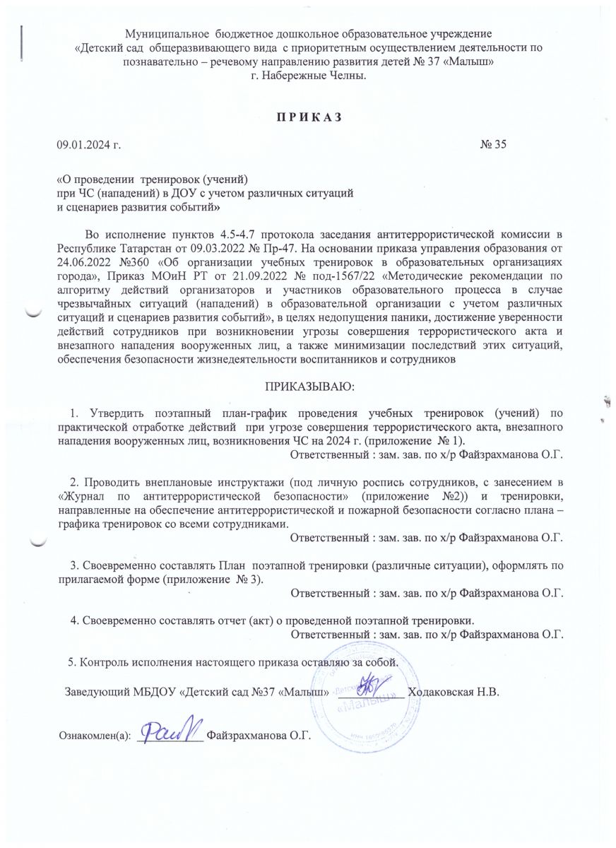Приказ №35 от 09_01_2024 О проведении тренировок - учений при ЧС.jpg
