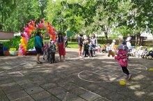 Сегодня в "Аленьком цветочке" прошёл сабантуй для ребят всех групп. Дети участвовали в соревнованиях "Перетяни канат", "Бой на подушках", "Бег в мешках", "Разбей горшок". Играли в игры "Донеси и не пролей", "Скачки на конях". К ребятам в гости приходили герои сказок Былтыр и Шурале.