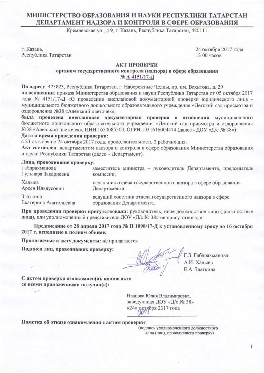 Предписание департамента надзора и контроля в сфере образования от 28.04.17г.