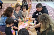 30 марта в МБДОУ 4 "Веселинка" была организованна встреча с родителями и детьми старших и подготовительных к школе групп в рамках городского марафона "Уроки семейного счастья" - на тему: " Играем всей семьей", с целью гармонизации детско-родительских взаимоотношений. Участники с удовольствием выполнили упражнение "Ромашка" и поиграли в увлекательные игры, такие как "Усачи", "Дубль", "Построй башню", а также выполнили артикуляционную гимнастику с учителем-логопедом. В конце встречи родители получили брошюры с рекомендациями.