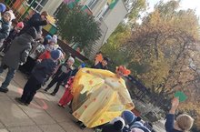 Карагыз әле, бүген безнең урамда ничек якты һәм матур. Тирә-юньдә төсле матур яфраклар янып тора. Бүген безгә бәйрәм килгән.