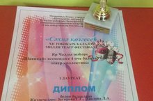 Хотим поздравить педагога по обучению детей татарскому языку Загирову Гульчачак Гаязовну с Дипломом лауреата 1 степени за организацию театрального коллектива детей под названием "Шаянкай" и участие в Фестивале"Сэхнэ козгесе".