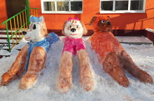 Ещё недавно всем детским садом с радостью нагребали кучи снега, чтобы слепить горку, другие снежные постройки. Радует то, что не прошли старания даром, дети могут вдоволь наиграться с нашими ледяными друзьями, и даже фотографироваться на память.