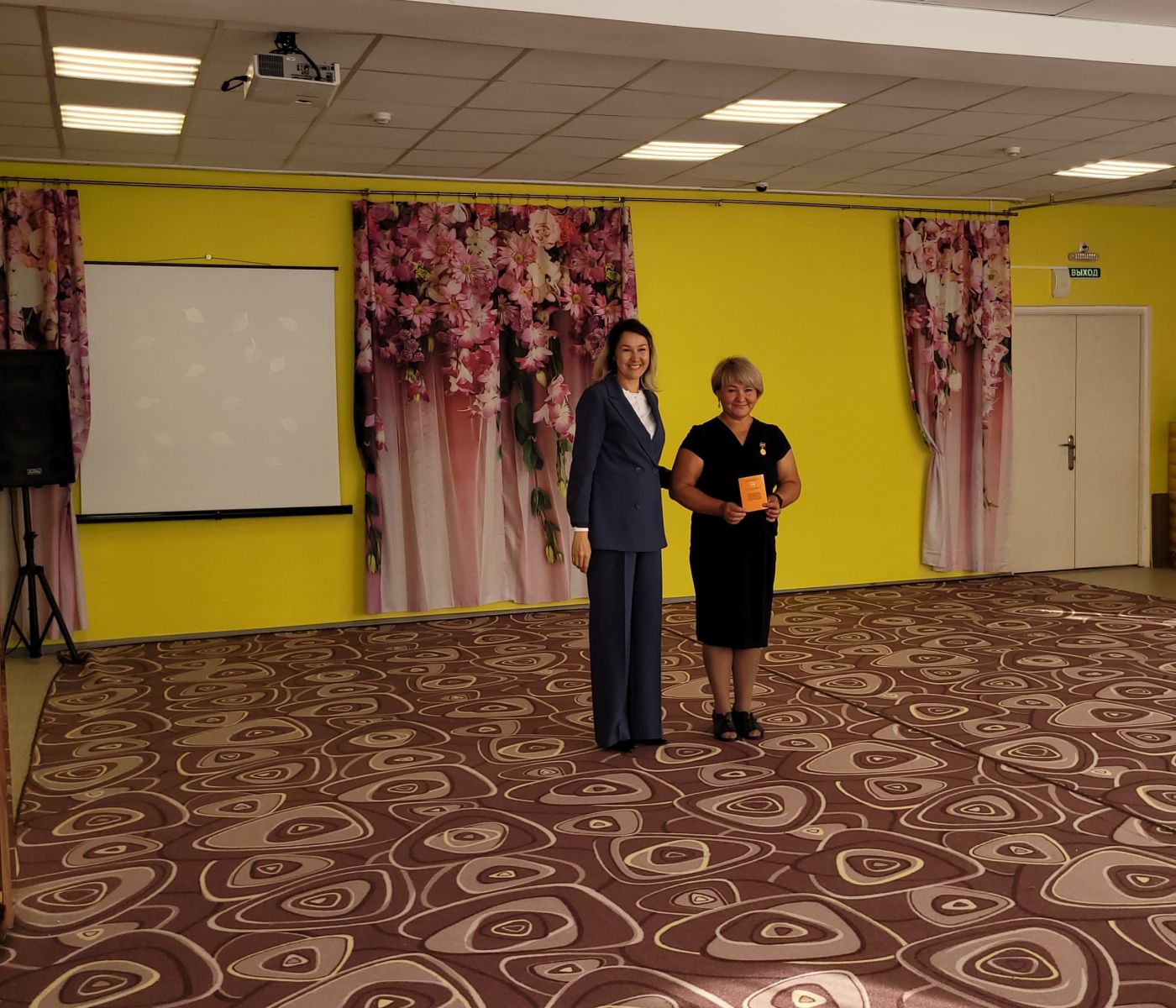 Опубликовано: 27.09.2023Воспитатель детского сада №4 "Веселинка", Смирнова Айгуль Фаниловна, награждена нагрудным знаком "За сохранение и развитие языков, культур, традиций". Поздравляем!