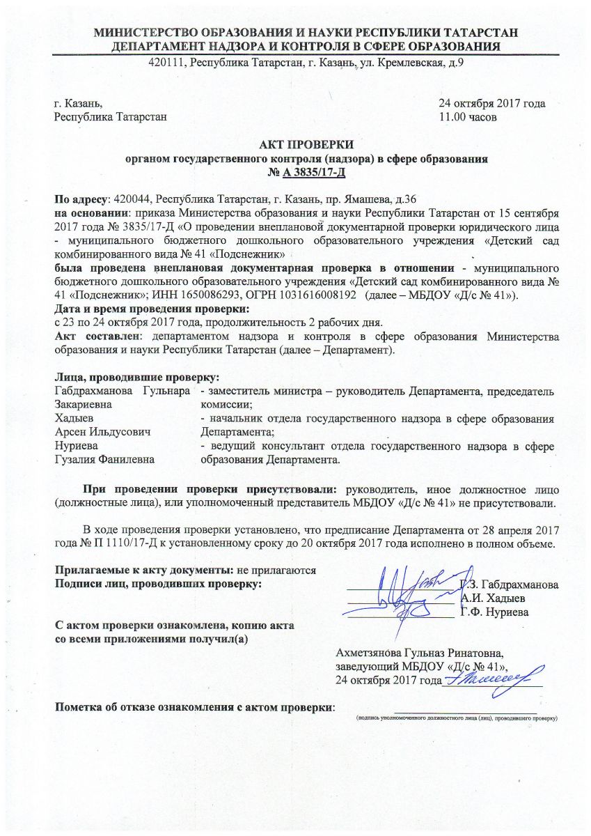 3. Акт проверки органом государственного контроля (надзора) в сфере образования № А 3835/17-Д